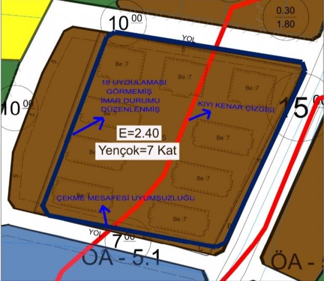 İmar planına aykırı kat ilavesi Kıyı kenar çizgisinin altında inşaat 18 uygulaması yapılmamış parsele ruhsat verilmesi 18 daire fazlalığı 6 yıl sonra yeğen tarafından “düzeltme ruhsatı” hazırlanması Kamuya ait yolun parsel içine katılma girişimi İmar planının projeye göre sonradan değiştirilmesi
